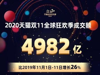 2020年天貓雙11銷售額,11.11成交額49...天貓雙11銷售額,11.11成交額,雙11成交額Nov. 12 14:36:00,2020